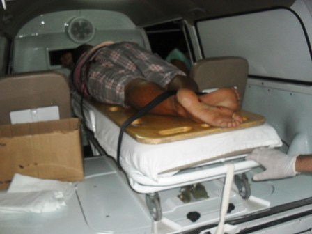 Eriberto Alves Teixeira, 33 anos, que sofreu um tiro agora há pouco na região Glútea de seu corpo, e encontra-se com o projetil alojado na perna direita, após provavelmente ter perfurado a bexiga, foi encaminhado à Natal para um tratamento especializado e seu estado inspira cuidados, segundo enfermeiros da urgência do Hospital Padre João Maria de Currais Novos.