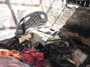 Tal incêndio fora causado por uma lamparina utilizada para iluminar a casa em virtude do domicilio não dispor de energia elétrica. A policia Militar, que tem a frente o competente Sargento Rogério, adotou providências no sentido e conduzir a vítima até a DP para registrar a ocorrência.