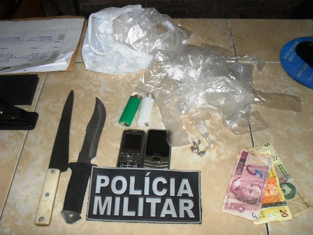 E ontem, junto com o Competente Soldado Ferreira, localizaram em patrulhamento de rotina, na posse de Wyllyplesly Reberthi Mascena de Lima, de 21 anos, residente na Rua Riacho Caibreira, três tabletes de maconha, uma trouxa de crack, dois celulares, e uma quantia em dinheiro trocado, além de Lâminas de barbear e sacos plástico, que é usado para embalar a droga.