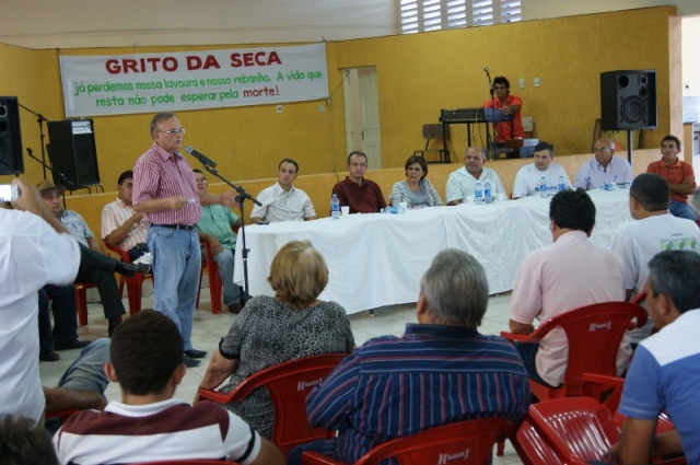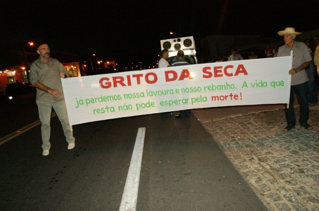 Discutir ações emergenciais para o combate a maior estiagem dos últimos 50 anos fez com que um grupo de agricultores e alguns prefeitos do Seridó se reunissem nesta sexta-feira, 12, em Acari, para o “Grito da Seca”, encontro organizado pela médica veterinária Joana D’Arc Pires, que recentemente furou um bloqueio de seguranças para entregar à presidenta Dilma Rousseff, uma carta de reivindicações do povo potiguar. A reunião contou com a participação de diversos presidentes de associações rurais do Estado, como o presidente da Associação Seridoense de Criadores, Nivaldo Saldanha, e de alguns prefeitos da região, Vilton Cunha (Currais Novos), Isaias Cabral (Acari), Titico Araújo(Tenente Laurentino), e do vice-prefeito de São Vicente, Andreazza Fernandes. “Os problemas que a estiagem causa na nossa região é antigo, e até hoje nenhuma ação concreta foi realizada, não podemos mais esperar obras paliativas, o Nordeste tem sede”, disse o prefeito Vilton Cunha. O “Grito” também foi uma forma de protestar contra a política de juros dos brancos, que cobram taxas exorbitantes aos pequenos produtores rurais. No final da reunião, os participantes seguiram até a Igreja do Rosário, centro de Acari, onde deram continuidade ao protesto.