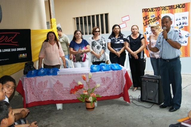 A leitura como instrumento de aprendizagem do ser humano é fundamental para que possamos enriquecer nosso vocabulário, obter conhecimento, dinamizar o raciocínio e a interpretação. Com o objetivo de aproximar as crianças à literatura, o PROERD em parceria com a Secretaria Municipal de Educação, entregou nesta quarta-feira, 17, kits literários à algumas escolas do município durante cerimônia na Escola Municipal Salustiano Medeiros. De acordo com Adaildo dos Santos, coordenador do PROERD em Currais Novos, 323 kits foram entregues em Currais Novos, beneficiando alunos das escolas municipais Cipriano Lopes Galvão, Justino Dantas, Gilson Firmino, Francisco Leonis, Salustiano Medeiros, além das unidades escolares das comunidades Maxinaré e Serrote do Melo. O evento contou com a participação da secretária municipal de educação, Aparecida Medeiros, diretores das escolas beneficiadas com os kits, e da primeira-dama do município, Ana Maria.