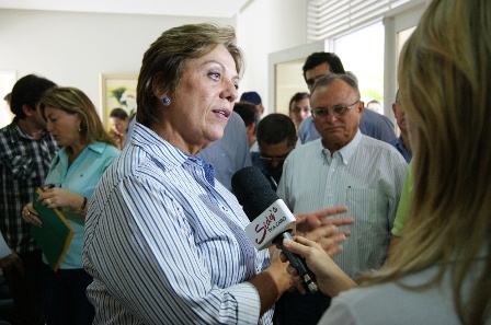 A Governadora do Rio Grande do Norte, Rosalba Ciarlini, assinou nesta sexta-feira (24), o termo de cooperação com os municípios do Seridó para a perfuração e instalação de poços. A solenidade aconteceu na sede da Associação dos Municípios da Micro Região do Seridó Oriental (AMSO), com a participação dos prefeitos da região, como os presidentes da AMSO, Vilton Cunha, e da Associação dos Municípios do Seridó (MAS), Genilson Maia, prefeito de São Fernando, além do Secretário Estadual de Meio Ambiente e Recursos Hídricos, Leonardo Rego, e de alguns secretários de Estado e autoridades dos municípios.