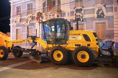 As máquinas do Programa de Aceleração do Crescimento 2 (PAC 2) doadas pelo Governo Federal aos municípios atingidos pela seca, já estão em Currais Novos e deverão iniciar os trabalhos de recuperação e construção de barragens, cacimbas e pequenos barreiros na zona rural do município. Em encontro com os prefeitos do Rio Grande do Norte no último dia 03 em Natal, a presidenta Dilma afirmou que a doação de uma retroescavadeira e motoniveladora aos municípios atingidos pela estiagem é uma forma de se obter “segurança hídrica”. O kit do PAC 2 ainda conta com um caminhão-pipa, caminhão-caçamba e pá carregadeira, que deverão ser entregues ainda este ano à todos os municípios contemplados. No total, o Governo Federal está investindo cerca de R$ 1,5 milhão por cidade atendida com essas ações estruturantes. Durante o FORRONOVOS 2013, as máquinas estiveram expostas em frente à Prefeitura. “Vamos iniciar a recuperar estradas rurais e construir barreiros para que as famílias da zona rural sejam as maiores beneficiadas”, disse o prefeito Vilton Cunha.