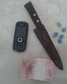 Na manhã deste domingo, a guarnição de serviço de Tenente Laurentino Cruz, composta pelos sd’s, Graco, Jazo e Geraldo, encontravam-se em patrulhamento, quando perceberam o jovem, PEDRO ROBERTO DA COSTA (PEDRINHO) 19 anos residente na rua Antonio Manoel/Tenente Laurentino em atitude suspeita. Ao realizar a abordagem foi encontrado com o mesmo cinco trouxinhas de maconha e uma faca em sua cintura, a qual, o acusado disse usar pra se defender de seus desafetos.