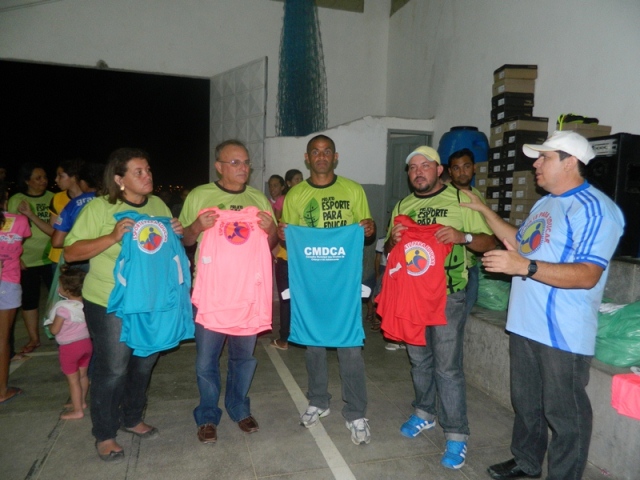 Desenvolver atividades de proteção e defesa dos direitos de crianças e adolescentes é uma das principais metas dos projetos contemplados pelo Fundo da Infância e Adolescência – FIA. Em Currais Novos, cinco projetos foram selecionados através de edital para receberem os recursos e aplicarem em ações sócio educativas e culturais, como o Projeto “Esporte para Educar”, desenvolvido pela Associação dos Moradores do Bairro Paizinho Maria, que conta com a participação de 60 crianças. Na noite desta quinta-feira (19), o prefeito Vilton Cunha participou da entrega dos kits esportivos aos jovens e afirmou que as ações em benefício das crianças e jovens currais-novenses devem contar com apoio do poder público e de toda a população. “Temos o compromisso em desenvolver ações em prol das nossas crianças e jovens, e projeto social como este só contribui para o fortalecimento do nosso trabalho”, disse o prefeito. Edna Dantas, coordenadora municipal do projeto “Educar pela cultura de paz”, afirmou que ações como estas são importantes para coibir a violência e a evasão escolar. “O esporte contribui para a socialização dos jovens e fortalece as políticas públicas sociais”, disse. O presidente da Associação, Reginaldo Francisco, disse que o momento era de extrema alegria, e que as atividades irão beneficiar toda a comunidade. A vereadora Celinha e a primeira dama Ana Maria Furtado, prestigiaram a entrega dos materiais.