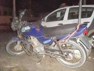 Por volta das 17h30 deste Domingo (03/11/13) a Polícia Militar foi acionada para atender uma ocorrência na comunidade Barro Branco, município de Lagoa Nova, em que uma moto Honda tinha sido tomada de assalto.