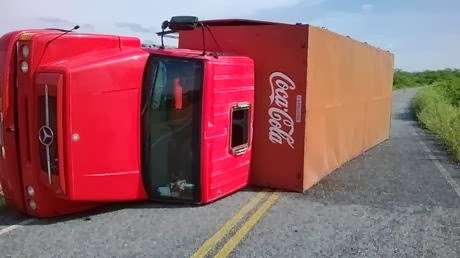 Caminhão da Coca Cola capota próximo a Caicó