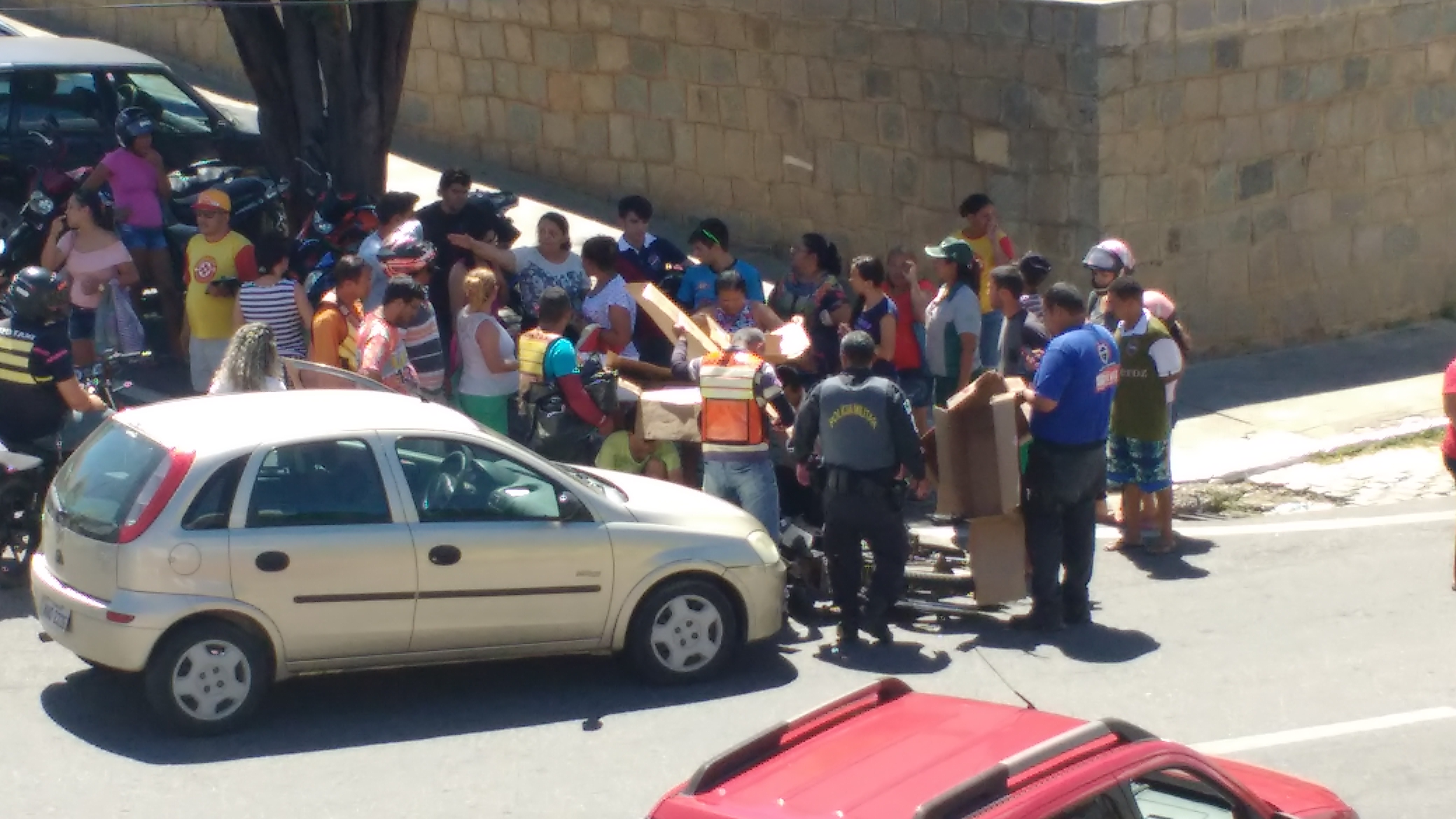 Por volta de 11h50 deste Sábado (13), foi registrado um acidente na Avenida Silvio Bezerra, Centro de Currais Novos. Uma colisão posterior, onde um corsa Hatch, de cor bege colidiu em uma moto, onde o condutor chegou a cair no solo e foi atendido por um socorrista que ia passando no momento. Na hora que a reportagem do Blog do Jota Dantas chegou a vítima já havia sido atendida.