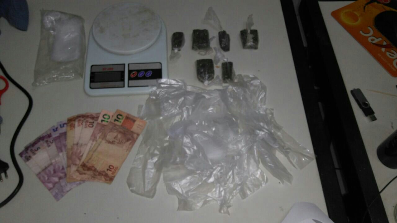 Os policiais levaram a dupla ao local onde foi encontrado drogas, troxinhas prontas para vendas, sacos para embalagem da droga uma quantidade de dinheiro, uma balança de precisão e uma moto.