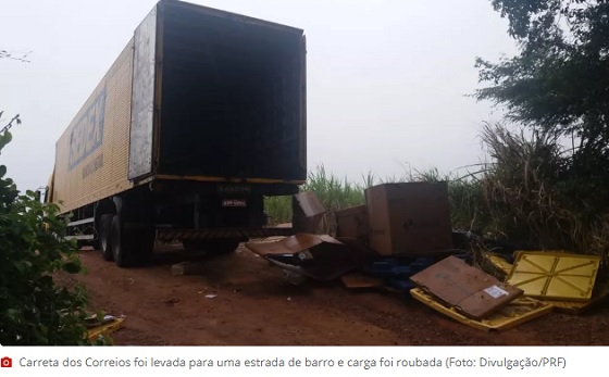 Os bandidos transferiram parte da carga dos Correios para o caminhão e fugiram. Ninguém foi preso.