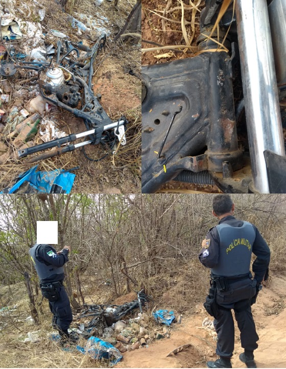 Por Blog PM Currais Novos: Na manhã dessa quinta-feira (23/08/18) uma motocicleta Honda, ano 2002, cor verde, foi encontrada depenada em uma estrada carroçável, próximo a comunidade Buraco de Lagoa no município de Lagoa Nova. A Polícia Militar foi acionada, porém não foi possível a identificação pelo chassis por estar muito danificado. O veículo foi conduzido para o destacamento de Lagoa Nova onde se tentará identificar a origem.