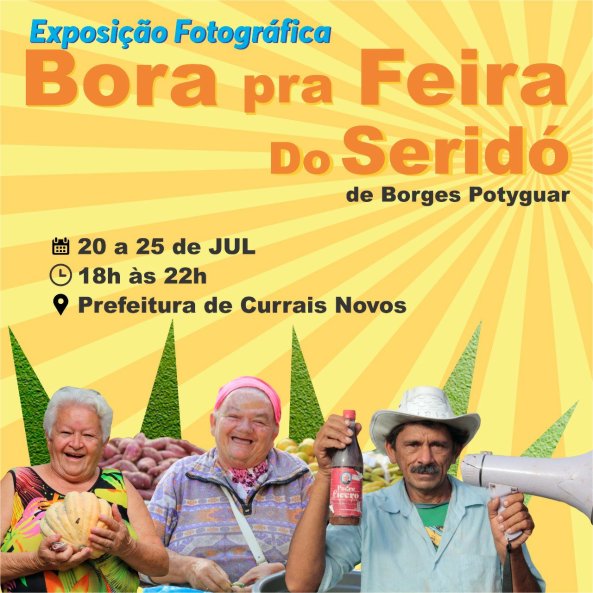O salão Nobre do Palácio Raul Macedo irá receber de 20 a 25 de julho, a Exposição fotográfica “Bora pra feira do Seridó” do artista currais-novense Borges Potyguar. A exposição propõe revelar as belezas, a alma e o cotidiano das feiras do Seridó, lugar de encontro e de passagem, onde o homem do campo e da cidade se encontram para tomar aquele cafezinho típico da região.