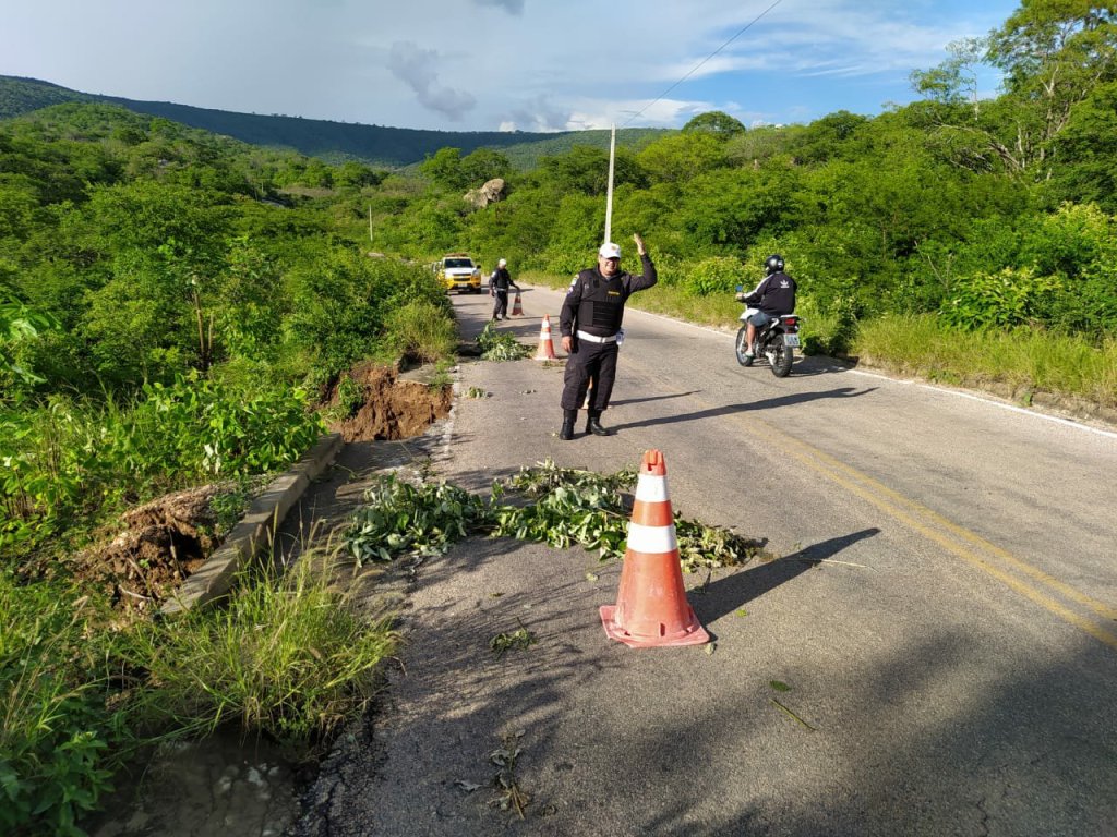 POR BLOG DO JOTA DANTAS – O segundo grupamento de trânsito, com sede em Currais Novos, recebeu informações na tarde desta segunda (02), de que as margens da RN 041 estava acontecendo infiltrações na pista e uma cratera havia se formado. Com isso, uma viatura se deslocou ao local e colocou cones para sinalizar. O imenso buraco leva perigo a motoristas que trafegam no local.