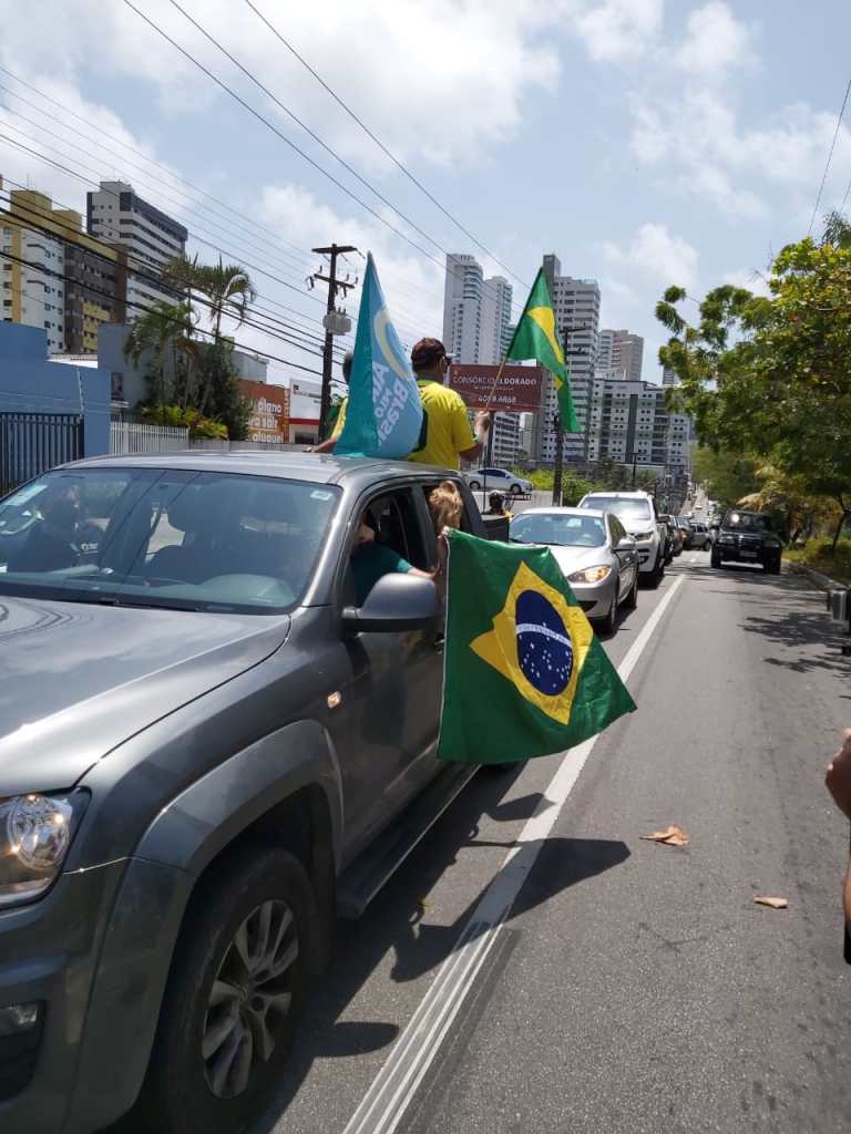 Organizada pelos movimentos sociais de direita do Estado, a carreata realizada na manhã deste domingo (16) reuniu mais de 200 veículos, centenas de famílias e contou ainda com a presença do deputado federal General Girão e do Coronel Hélio Oliveira, pré-candidato a prefeito de Natal pelo PRTB. A carreata teve como principais objetivos a manifestação de apoio ao presidente Jair Bolsonaro, a normalização da atividade econômica no RN e o repúdio à punição aos policiais militares pelo Governo do Estado. Com concentração na praça do Mirassol, a carreata seguiu por ruas e avenidas da região sul de Natal e foi encerrada no entorno da Governadoria.