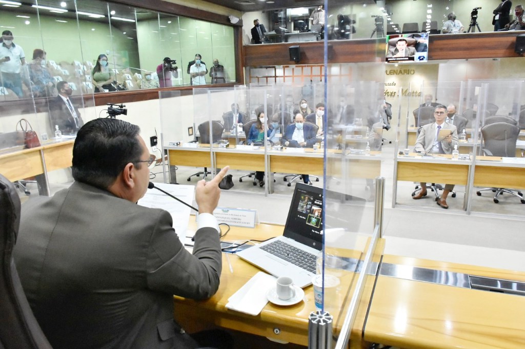 DEBATE – Na discussão em plenário, o líder governista, deputado George Soares (PL), agradeceu aos colegas da bancada de oposição, citando os deputados Tomba Farias (PSDB) e Galeno Torquato (PSD) por conduzirem o diálogo e a articulação em nome dos demais. “Quero destacar a união democrática do Poder Legislativo, diante dos acordos que foram construídos e se chegou a um consenso, a oposição cumpriu o seu papel de construir um embate e até apresentar uma proposta. Também quero parabenizar o governo por ter maturidade de que podemos construir um entendimento”, disse George Soares, que destacou do projeto a nova tabela para as reduções e taxações, bem como o aumento do limite de isenção para os aposentados.