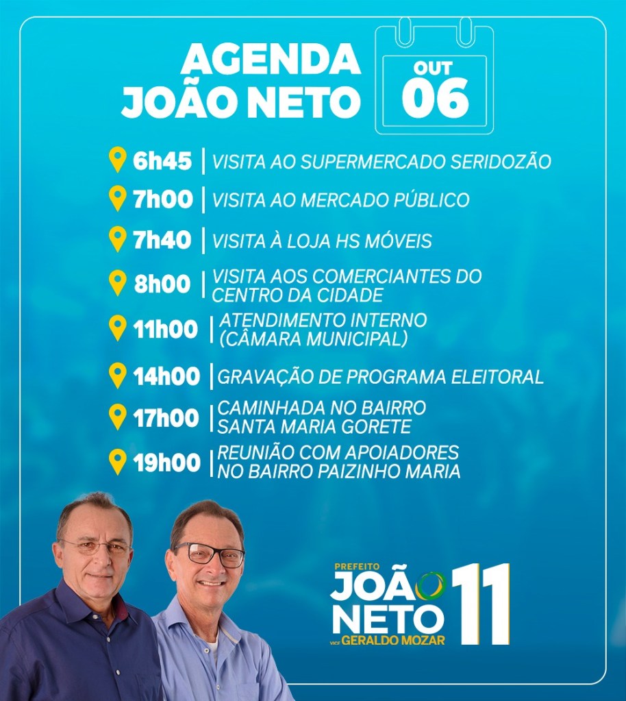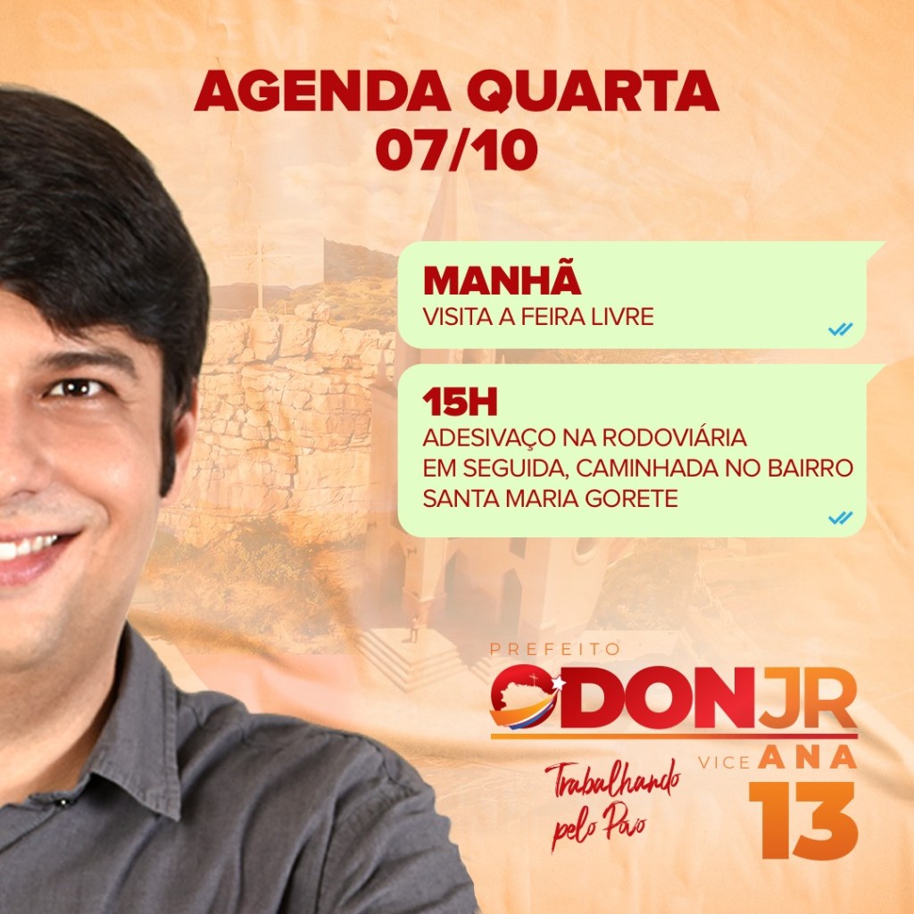 Agenda de Odon Júnior para quarta (07)