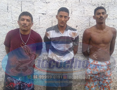 Três homens suspeitos de vários assaltos foram presos pela Polícia Rodoviária Federal e pela Polícia Militar na manhã desta segunda-feira (09). Com eles, foi recuperado um carro do Instituto de Defesa Agropecuária do Rio Grande do Norte (Idiarn) e outros produtos roubados. O veículo ficou com marcas de tiros na lataria e no vidro traseiro.