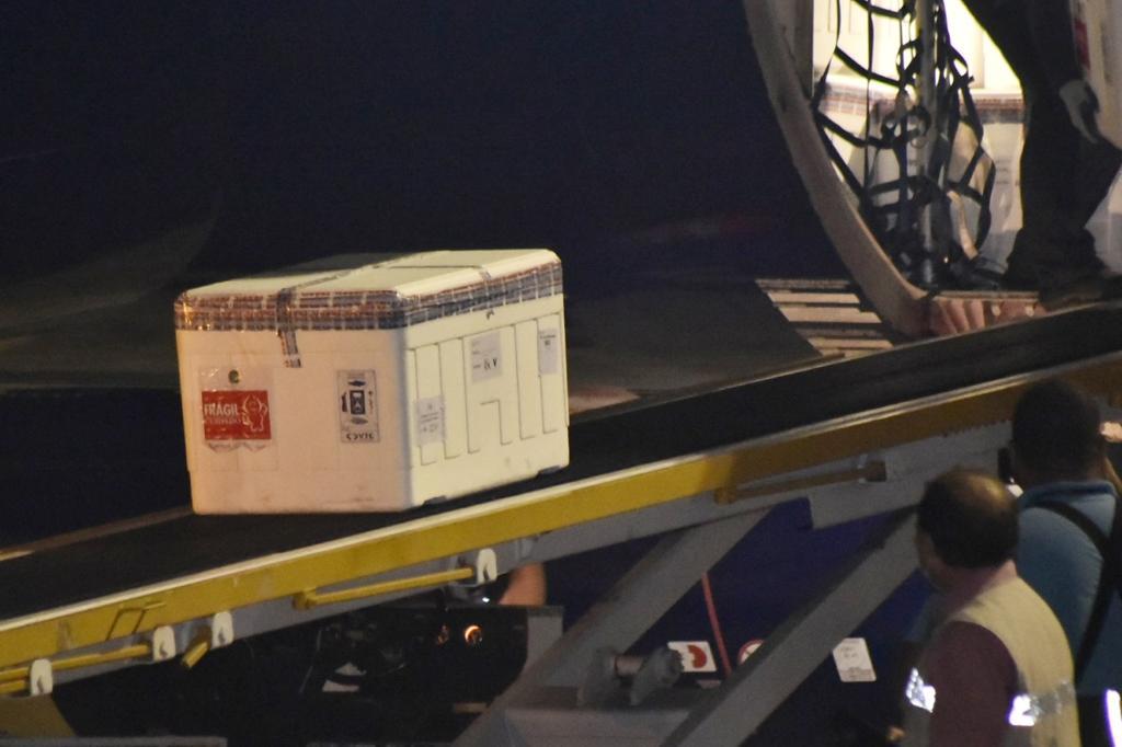 O primeiro lote de vacina contra a Covid-19 – a CoronaVac, desenvolvida pelo Instituto Butantan junto à Sinovac – chegou ao Rio Grande do Norte na madrugada desta terça-feira (19). O esperado voo com as doses do imunizante desembarcou no Aeroporto Internacional de São Gonçalo do Amarante por volta de 1h. Do aeroporto, as 82.440 doses foram transportadas para a Central de armazenamento e distribuição instalada na Unicat (Unidade Central de Agentes Terapêuticos), em Natal.