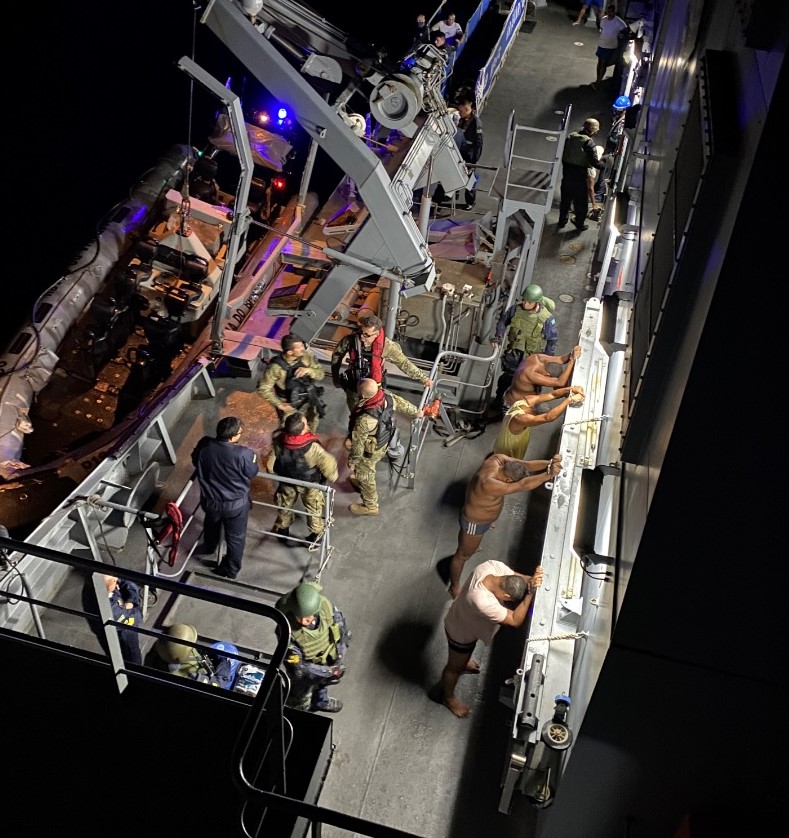 No interior da embarcação foram presos cinco tripulantes brasileiros, os quais seguiram conduzidos para a Superintendência da Polícia Federal em Pernambuco, onde ocorreu a formalização da prisão em flagrante.