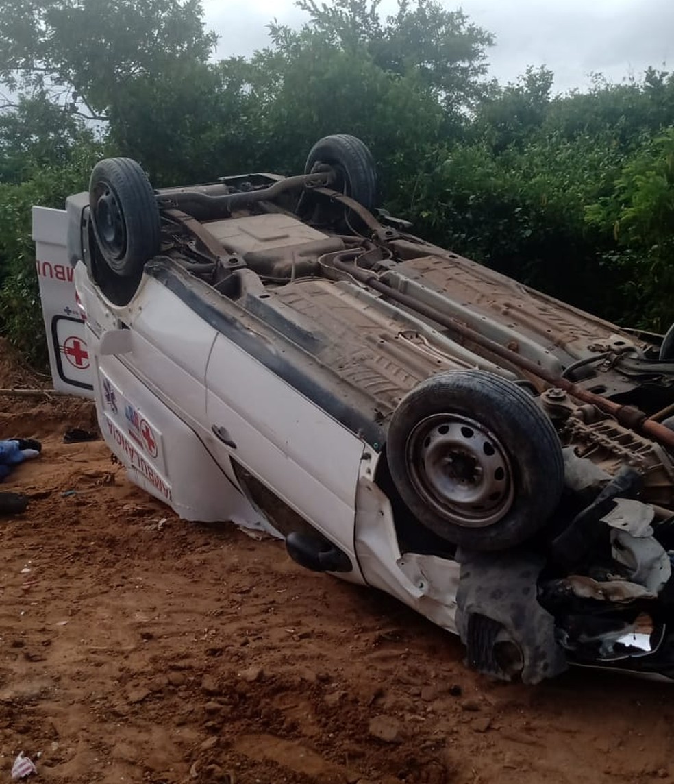 Ambulância que transportava paciente de capota e três pessoas ficam feridas