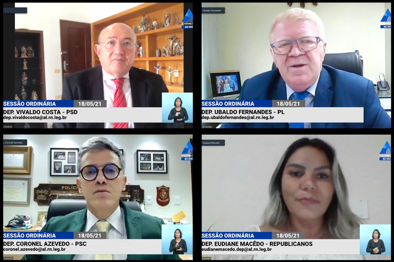 No horário destinado aos deputados, na sessão ordinária que aconteceu nesta terça-feira (18), na Assembleia Legislativa do Rio Grande do Norte, pronunciaram-se os deputados Vivaldo Costa (PSD), Ubaldo Fernandes (PL), Coronel Azevedo (PSC) e Eudiane Macedo (Republicanos). Vivaldo Costa falou sobre o pequeno produtor de leite da região Seridó; já Ubaldo Fernandes sobre festas religiosas, Coronel Azevedo, sobre os profissionais que trabalham com o segmento de eventos no Estado e Eudiane Macedo falou sobre combate à LGBTfobia.
