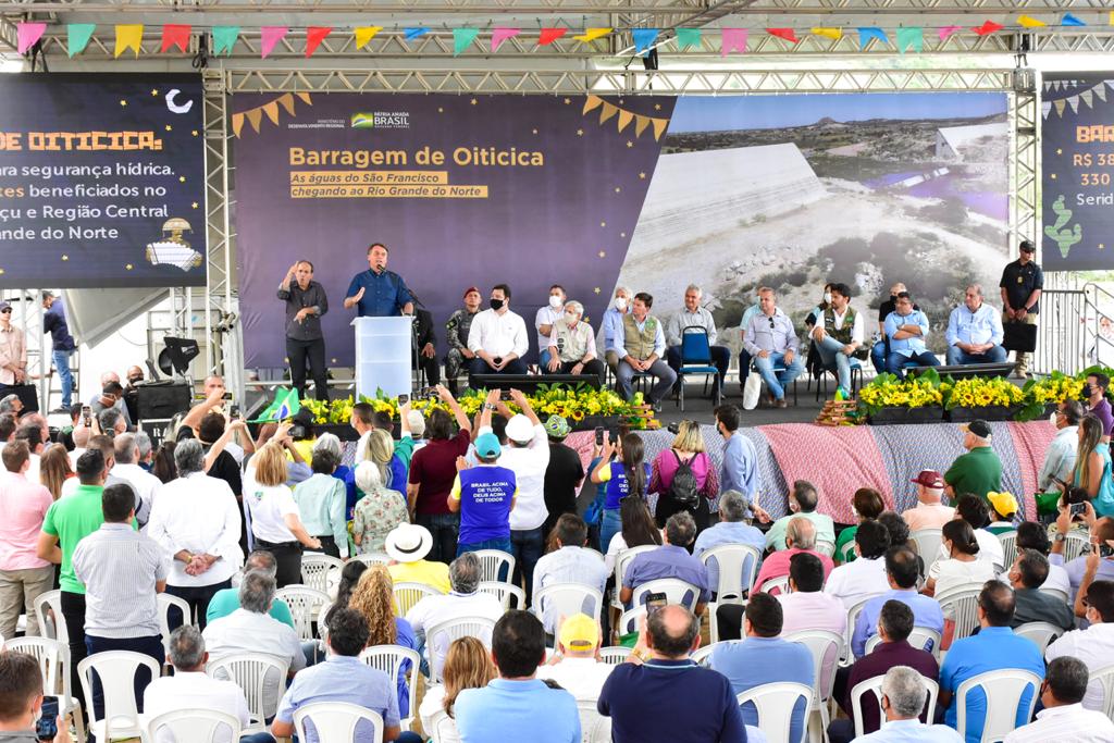 Fechando o evento, o presidente Jair Bolsonaro falou sobre a importância da Barragem de Oiticica para os potiguares e enalteceu o valor que as obras direcionadas à segurança hídrica têm para todo o povo brasileiro, em especial os que vivem em regiões com escassez de chuvas.