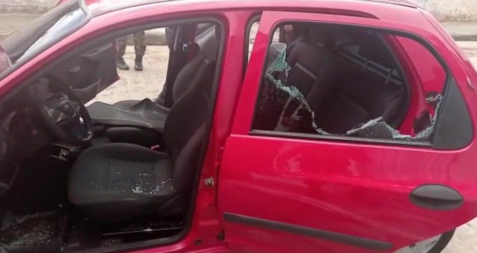 Criminosos em um carro vermelho atiraram contra o carro de um policial militar reformado, na frente da casa dele, no Conjunto Gramoré, e fugiram.