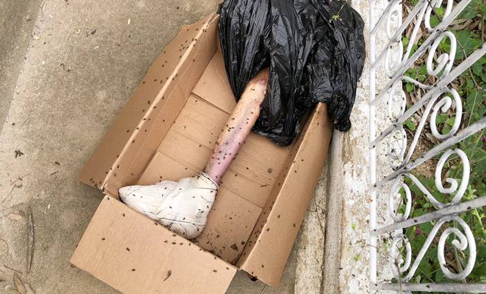 Uma perna humana foi encontrada dentro de uma caixa de papelão e enrolada em saco preto, na madrugada desta sexta-feira (28), por volta das 04h30min, dentro do Cemitério Campo Jorge, na zona norte de Caicó (RN).