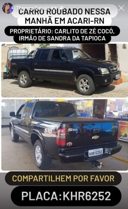 Na manhã dessa quarta-feira, 16\02\2022, dois bandidos armados que estavam em uma motocicleta chegaram numa residência que está sendo reformada na cidade de Acarí, renderam o proprietário e o pedreiro que estava na obra, amarraram os dois dentro da casa e fugiram numa camionete S-10 de placas KHR-6252 pertencente ao dono da casa.