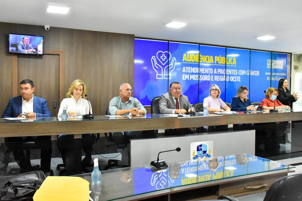 Presidida pelo deputado propositor, a Mesa dos trabalhos contou com a participação da secretária adjunta de Saúde do Estado, Lyane Ramalho; secretária de saúde de Mossoró, Morgana Dantas; presidente da Liga Missoroense Contra o Câncer, Paulo Henrique; representante da Unidade Regional de Saúde Pública, Emiliana Cavalcanti; representante da UERN, Claudia Leite; e representante da UFERSA, Valdemir Ferreira.