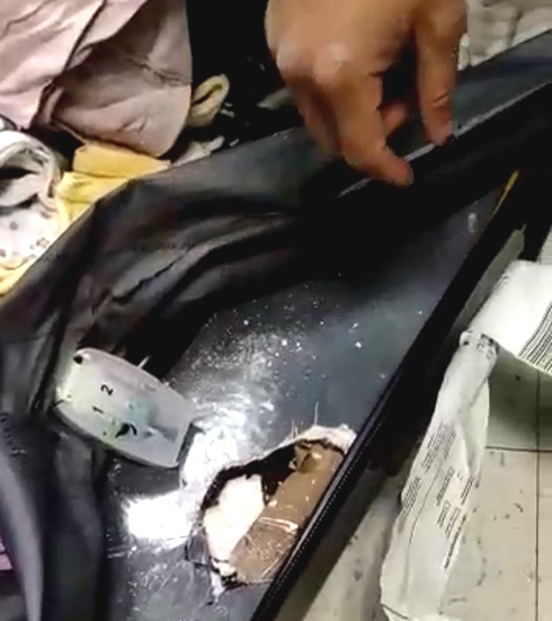 O passageiro foi então levado para a sala da PF onde, na presença de testemunhas, a bagagem foi aberta. Misturada às roupas nada foi encontrado, mas feito um furo no forro logo surgiu certa quantidade de um pó branco característico que, submetido ao teste preliminar (narcoteste), acusou positivo para cocaína.