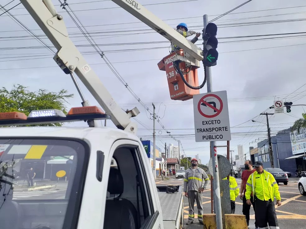 A STTU informou que a equipe de manutenção semafórica verificou que o braço e o portafoco não também estavam no local. A secretaria abriu boletim de ocorrência para apurar o caso.