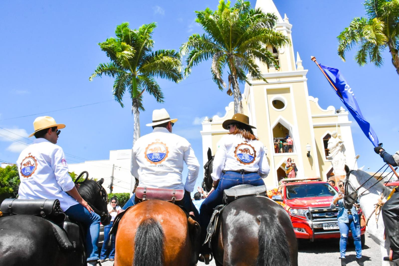 “É uma tradição entre os vaqueiros, homens e mulheres do campo que aproveitam as festividades de Sant’Ana para agradecer pelas chuvas e pedir por graças e proteção contra a COVID-19 e também a crise econômica que atinge o mundo”, afirmou Ezequiel Ferreira, que estava acompanhado do filho, João Ezequiel e da advogada Milena Galvão.