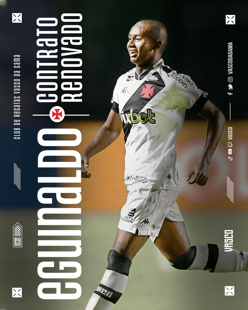 O Club de Regatas Vasco da Gama informa que exerceu a opção de compra de um talento oriundo de suas categorias de base. Trata-se do atacante Eguinaldo, que completou 18 anos na última terça-feira (09/08), pertencia ao Artsul (RJ) e estava emprestado ao Gigante da Colina até setembro de 2023. O novo vínculo de Eguinaldo com o Vasco irá até 08 de agosto de 2027.