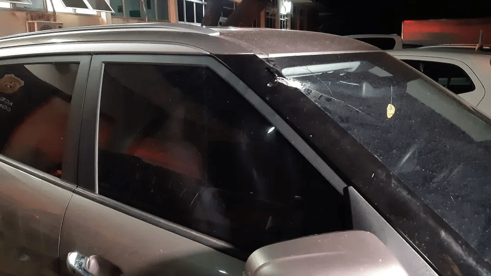 Já o carro da vítima do assalto foi atingido por um tiro no para-brisa, no mesmo lado onde estava a cadeirinha do bebê, mas a criança saiu ilesa.
