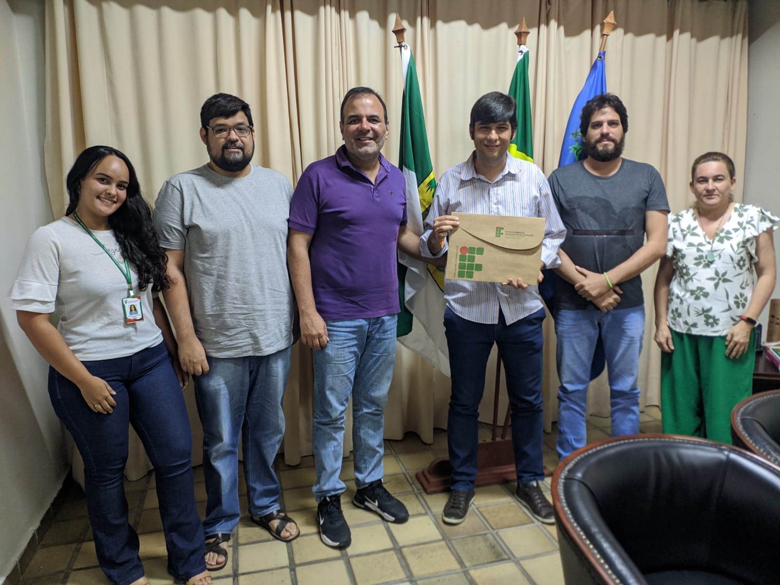 Na manhã desta quarta-feira (18), o Prefeito Odon Jr se reuniu com o diretor do campus local do IFRN, Andreilson Oliveira, e equipe do instituto que participa da organização do evento, para afirmar o compromisso do município com a realização da semana tecnológica. O secretário municipal de turismo, David Narwith, e a coordenadora da SEMTUR, Fátima Souza, também participaram da reunião.