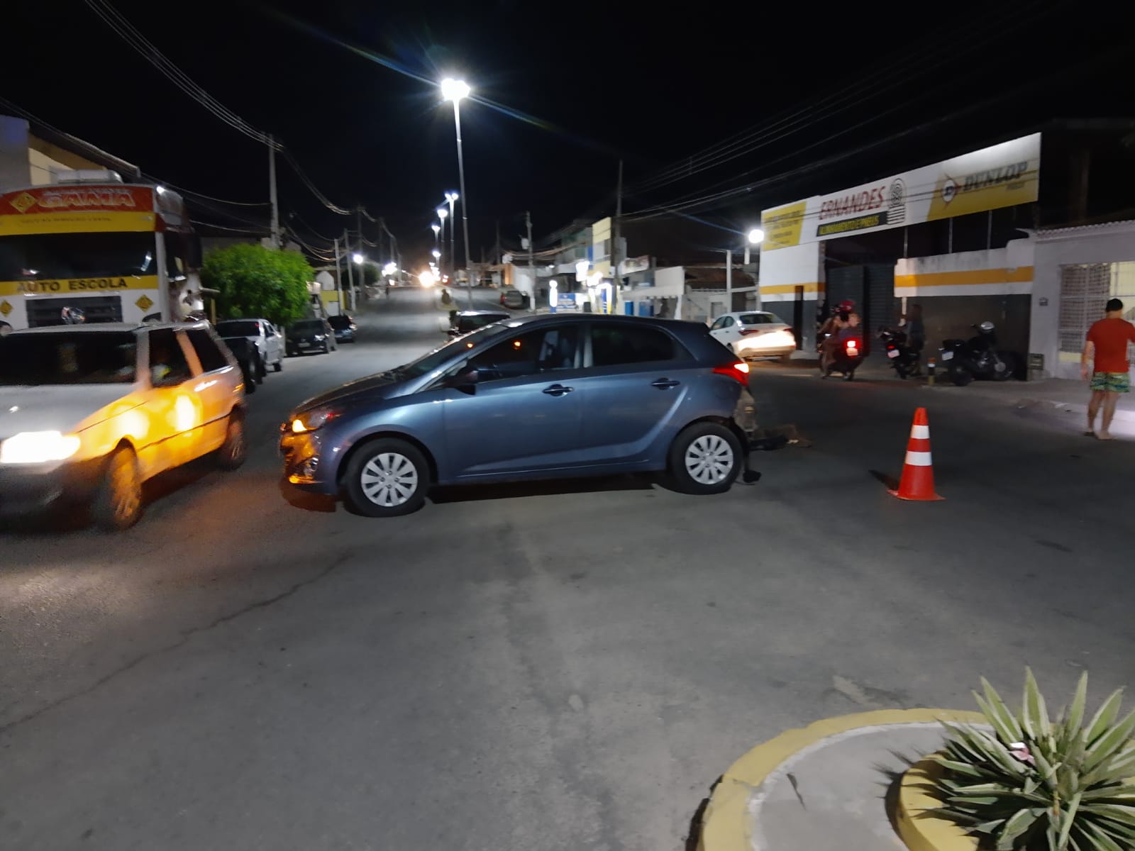 A POLICIA RODOVIÁRIA ESTADUAL através do 2º Pelotão de Currais Novos foi acionada para se deslocar até a Avenida Candido Dantas, no Parque Dourado, em Currais Novos, por volta de 20h desta quinta-feira dia 26 de janeiro de 2023, onde foi registrado uma colisão transversal envolvendo um HB20, de cor azul, ano 2015, que estava fazendo uma manobra e recebeu a colisão de uma motocicleta não identificada, pilotada por um cidadão de 22 anos, sem habilitação, residente na rua Paulo Furtado, também no bairro Parque Dourado.