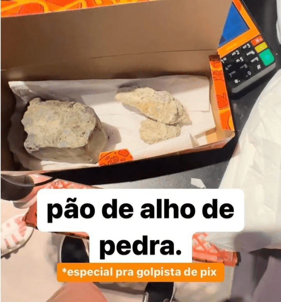 A empresa chegou a fazer testes e conferiu se o problema seria com a própria conta, mas após verificar que seria um golpe, resolveu mandar as pedras no lugar do lanche, gravar a situação e compartilhar. Um boletim de ocorrências também foi feito, informou o dono da Santo Alho, Venicius Cardoso.
