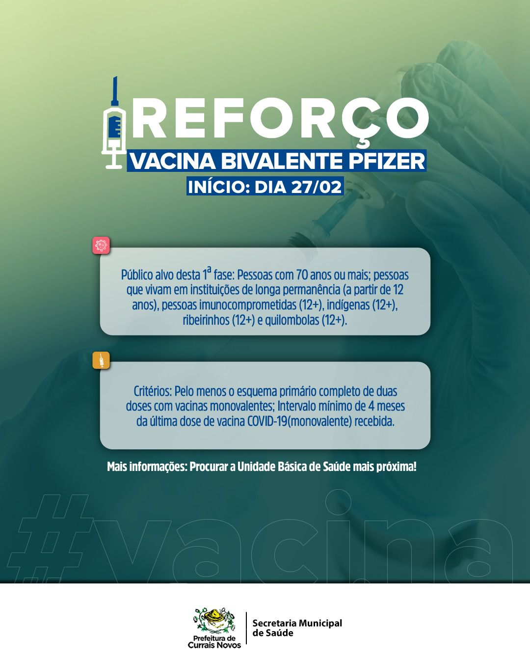 O imunizante bivalente contra o coronavírus e cepas atualizadas, incluindo a proteção contra a variante Ômicron, já está disponível para o público alvo desta primeira fase: Pessoas com 70 anos ou mais; pessoas que vivam em instituições de longa permanência e trabalhadores destas instituições; imunocomprometidos; indígenas, ribeirinhos e comunidades quilombolas.