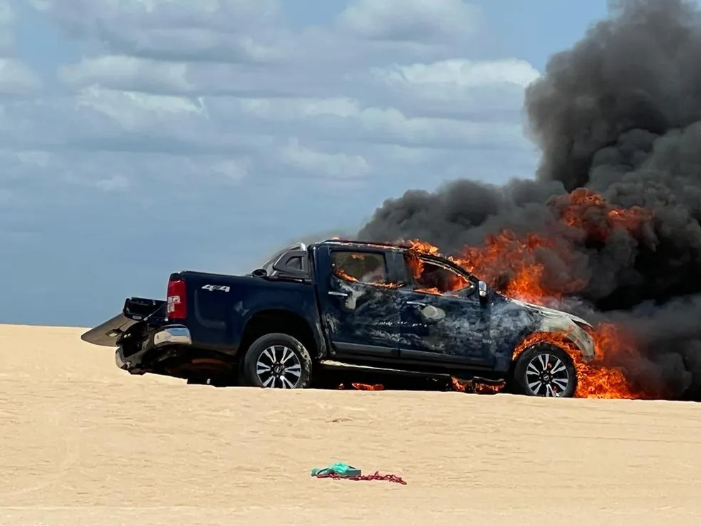 Um carro 4×4 pegou fogo durante um passeio em cima das dunas no município de Galinhos, no litoral do Rio Grande do Norte. O incidente aconteceu na tarde deste domingo (12) e ninguém ficou ferido.