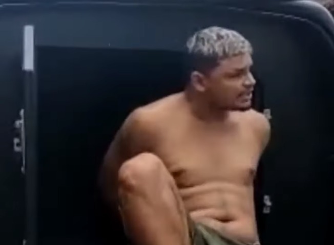 Depois de protagonizar as cenas do vídeo acima, prometendo também pegar o “cabueta” que o entregou, quando for solto, daqui a três ou quatro anos, “Cachorro Louco” foi para a audiência de custódia e ainda xingou e, mais uma vez, ameaçou a juíza. Pelo menos, foi decretada a prisão preventiva dele.