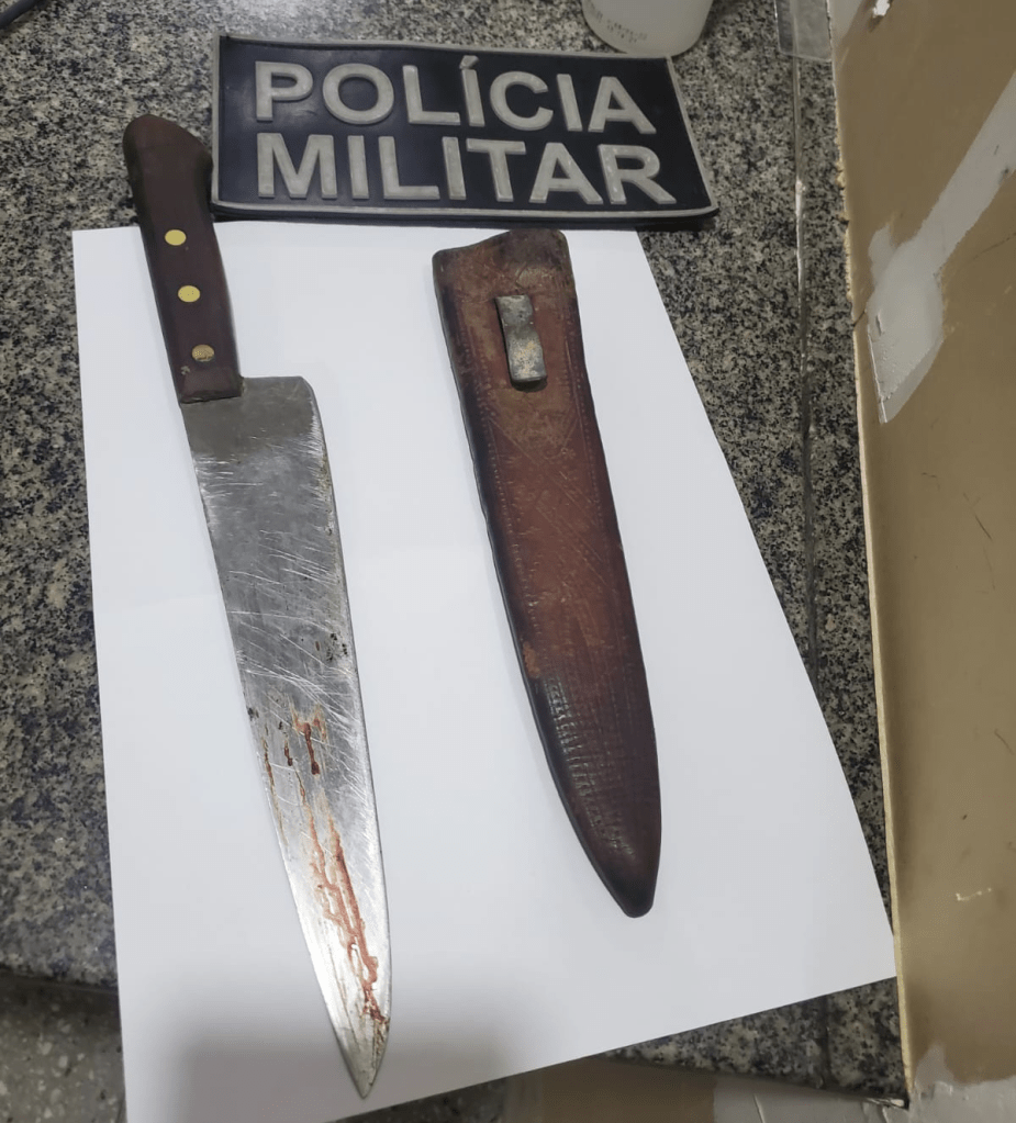 A guarnição conseguiu capturar o criminoso em fuga nas imediações do local do ocorrido, portando a suposta arma do crime, uma faca peixeira ainda ensanguentada.