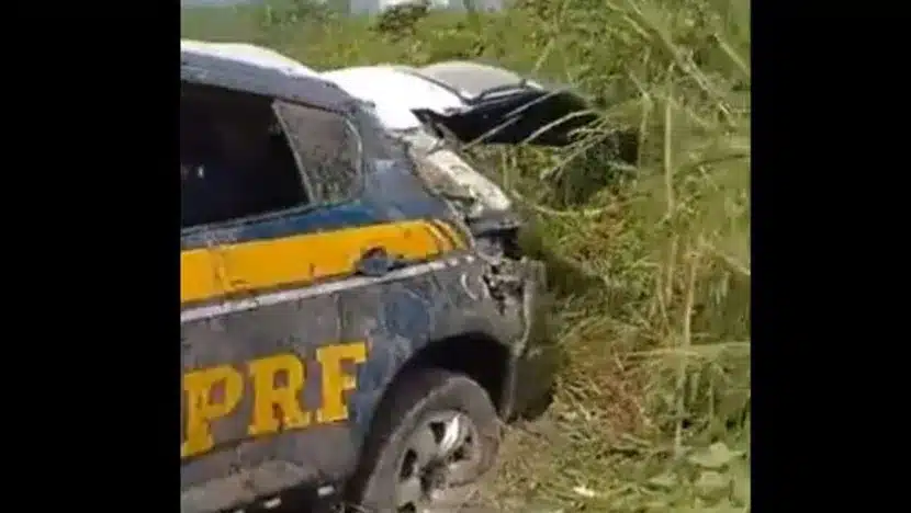 Uma viatura da Polícia Rodoviária Federal (PRF), lotada na Superintendência do Rio Grande do Norte, capotou no km 272 da BR-304, no município de Ielmo Marinho, neste domingo 23.