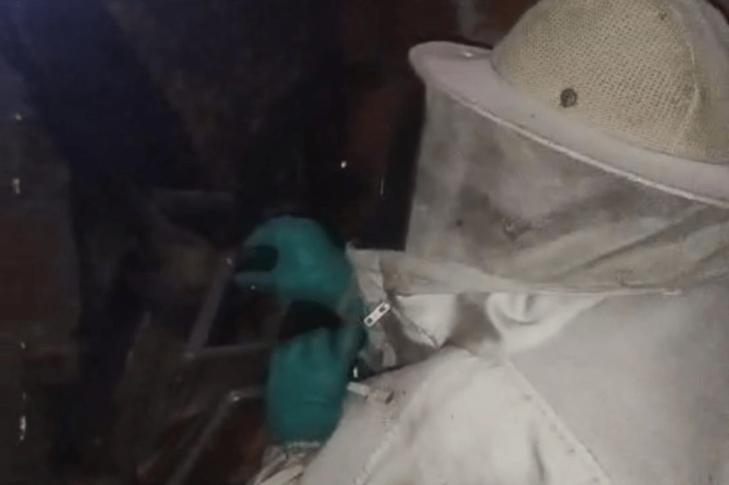 Para acalmar as abelhas e evitar ataques, os bombeiros utilizaram um fumegador, equipamento que direciona uma fumaça apropriada para abelhas, facilitando a remoção com segurança.