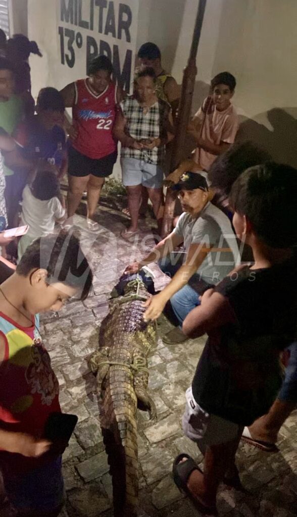De acordo com informações repassadas ao Blog Ismael Medeiros, o jacaré foi imobilizado e encaminhado até a unidade policial pelos moradores. Agora está sendo aguardado a chegada da Polícia Ambiental.