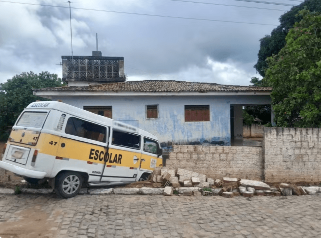 Uma kombi escolar derrubou um muro de uma residência em uma colisão no fim da manhã desta quarta-feira (15) na cidade de Ceará-Mirim, na Grande Natal. Uma criança teve arranhões na perna, mas não precisou de atendimento médico.