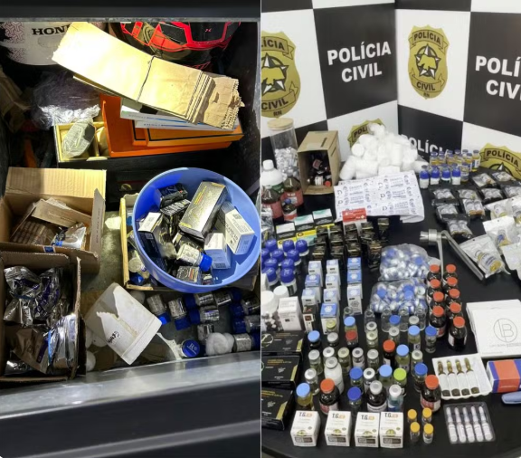 As investigações indicaram que o suspeito atuava na fabricação e venda ilegal de anabolizantes, medicamentos de uso controlado e produtos voltados ao emagrecimento.