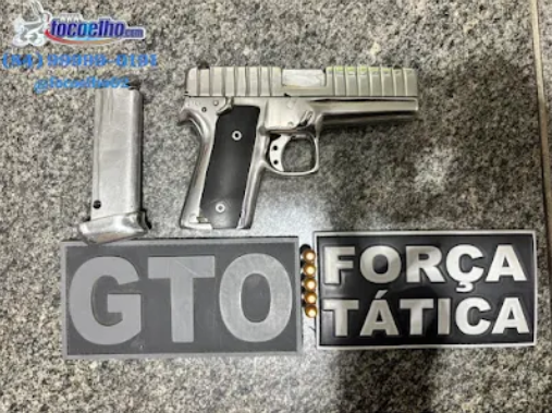 Após o acionamento, os policiais se deslocaram rapidamente até o local da ocorrência. O suspeito que tinha ingerido bebida alcoólica foi localizado e, durante a ação, a arma de fogo utilizada na agressão — uma pistola .40, sem fabricante defenido— foi apreendida pela equipe.