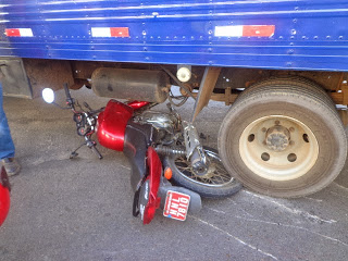 Por volta das 16h30 desta sexta-feira (04/10/13) um acidente foi registrado na Avenida Coronel José Bezerra, Centro de Currais Novos e por pouco não causou uma tragédia. Os dois veículos seguiam no mesmo sentido quando o caminhão fez uma conversão a esquerda para entrar na Rua Lula Gomes no momento em que a motocicleta tentava fazer a ultrapassagem. A moto e o condutor ficaram embaixo do caminhão e foram arrastados por cerca de 15 metros, porém o moto taxista por milagre não se feriu.