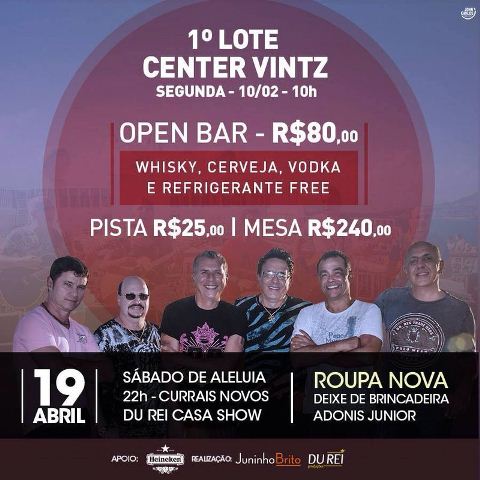 A Durei Promoções, empresa que está promovendo o show de Roupa Nova, no dia 19 de Abril, em Currais Novos, comunica que a partir de segunda-feira (10), já terá inicio a venda de ingressos para o evento, que deverá mobilizar o Rio Grande do Norte e estados vizinhos.